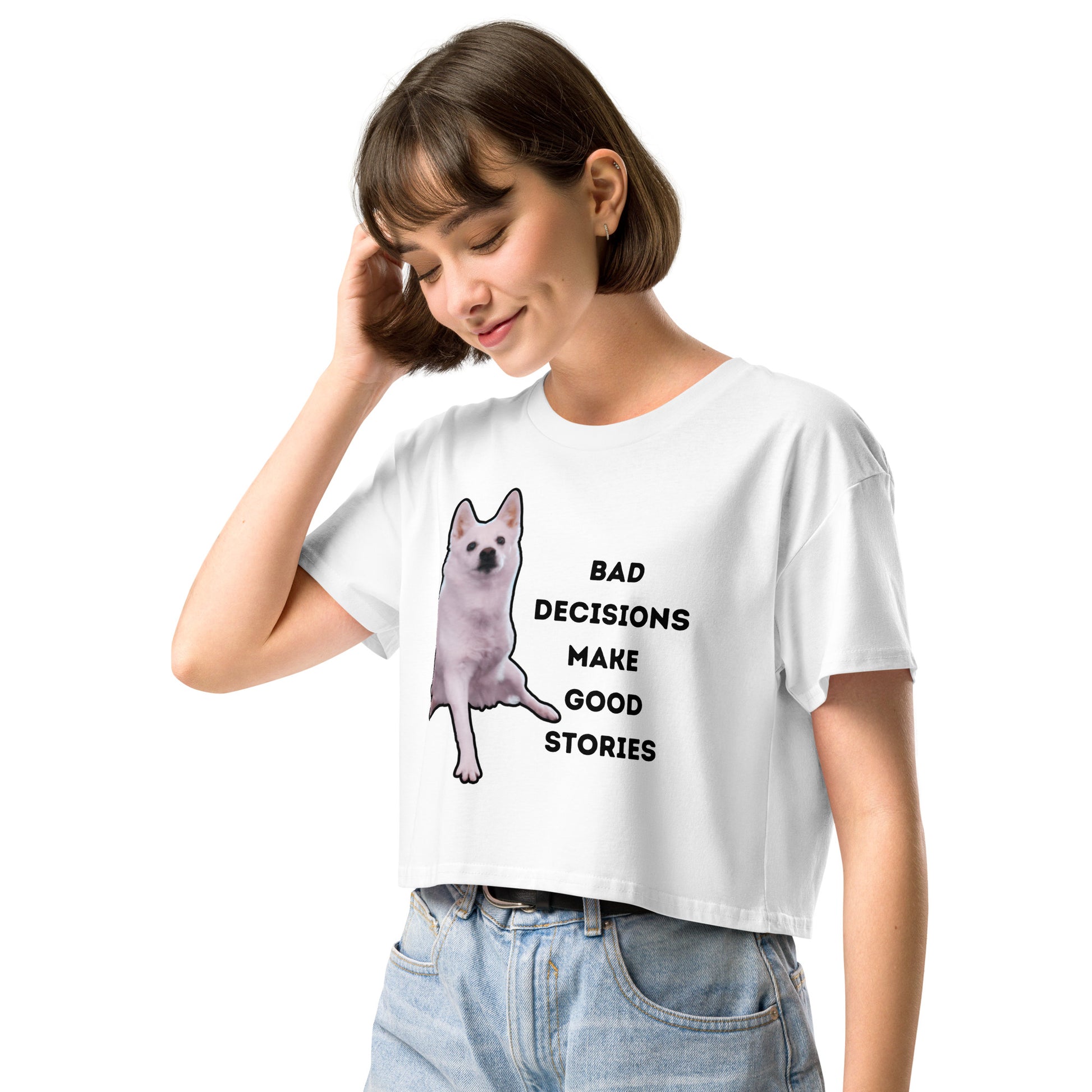 Bad Decision Makes Good Story Crop Top